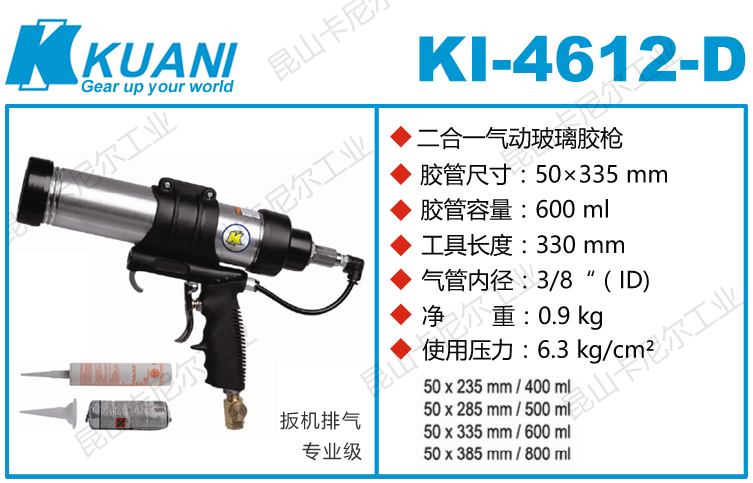 KI-4612-D冠亿二合一气动胶枪用途: