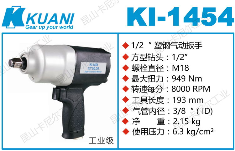 KI-1454冠亿气动小风炮特点:(重力压铸外壳,强度更高不变形,提高耐用度)