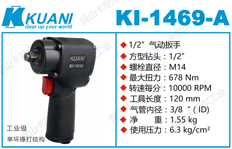 KI-1469A冠亿气冲击扳手特点:(重力压铸外壳,强度更高不变形,提高耐用度)