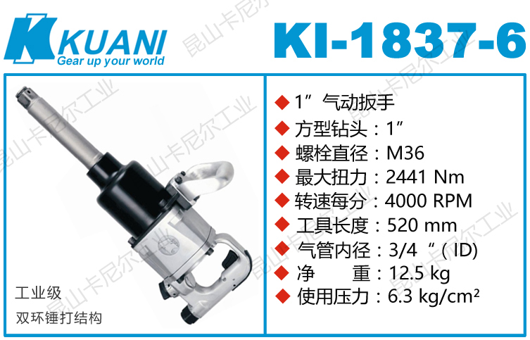KI-1837-6冠亿补胎风炮特点:(重力压铸外壳,强度更高不变形,提高耐用度)