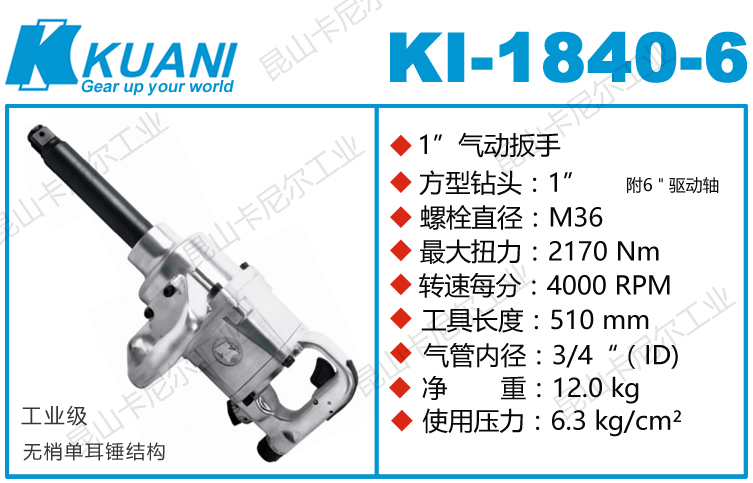 KI-1840-6冠亿工业气动大风炮特点:(重力压铸外壳,强度更高不变形,提高耐用度)