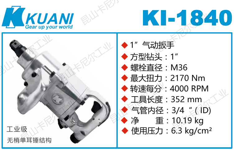 KI-1840冠亿混凝土管桩风炮特点:(重力压铸外壳,强度更高不变形,提高耐用度)