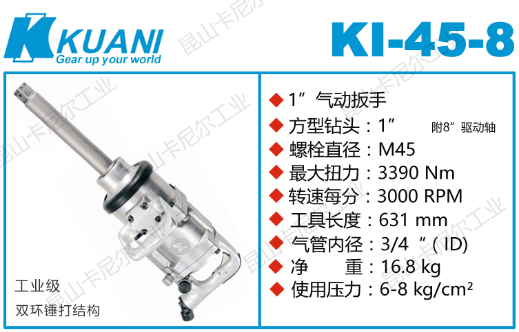 KI-45-8冠亿超大型空气冲击扳手用途: