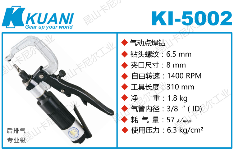 冠亿KI-5002风动点焊钻特点:(重力压铸外壳,强度更高不变形,提高耐用度)