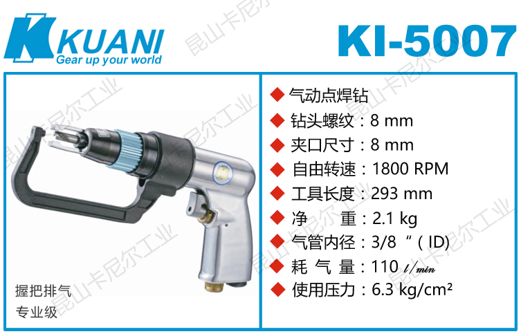 冠亿KI-5007气动点焊钻特点:(重力压铸外壳,强度更高不变形,提高耐用度)