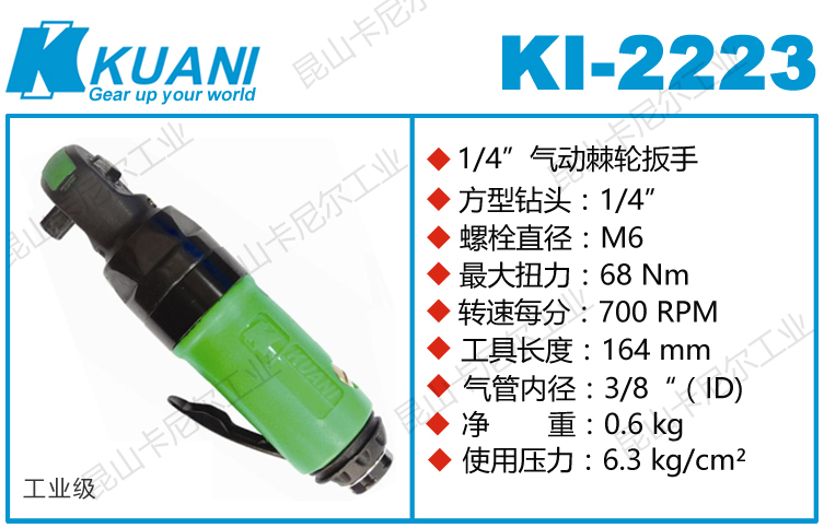 KI-2223冠亿风动90度扳手特点:(重力压铸外壳,强度更高不变形,提高耐用度)