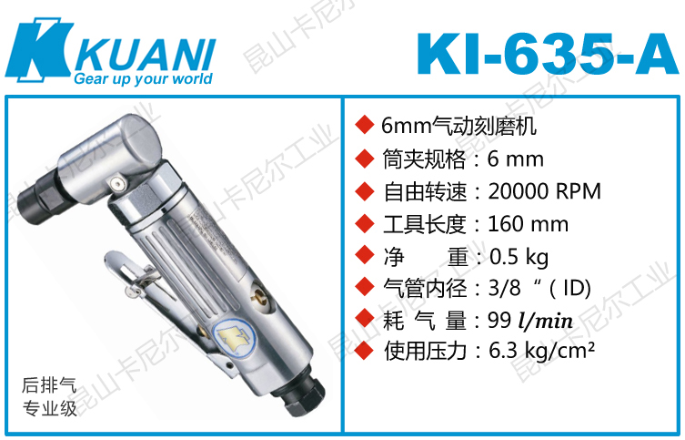 冠亿KI-635-A直角磨机特点:(直角弯头设计,更适合狭窄、深孔、细孔、偏角空间作业)