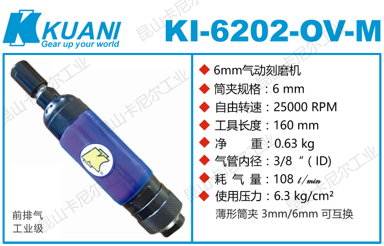 冠亿KI-6202-OV-M气动刻磨机特点:(超短设计,更适合狭窄空间作业)