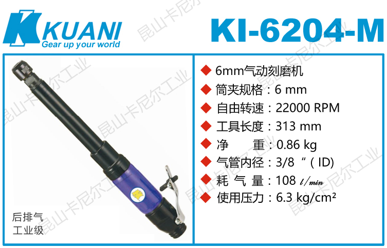 冠亿KI-6204-M加长型气动刻磨机特点:(模具厂专用)