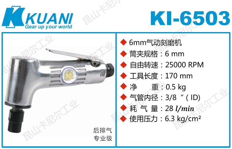 冠亿KI-6503弯头气动刻磨机特点:(弯头设计,更适合狭窄、深孔、细孔、偏角空间作业)
