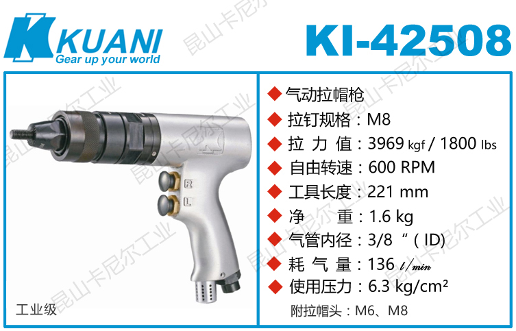 KI-42508冠亿气动铆螺母枪用途:
