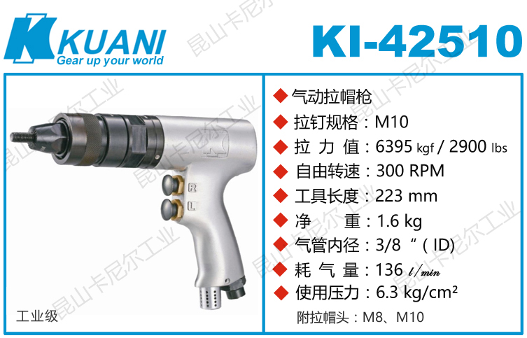 KI-42510冠亿气动铆螺母枪用途: