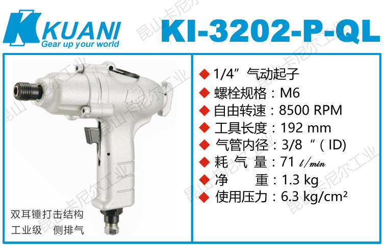冠亿KI-3202-P-QL气动风批枪特点:(重力压铸外壳,强度更高不变形,提高耐用度)