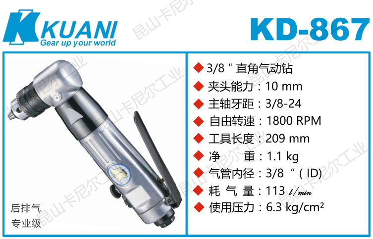 冠亿KD-867气动角向钻特点:(重力压铸外壳,强度更高不变形,提高耐用度)